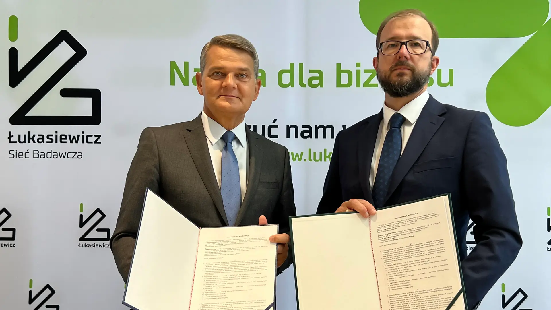 Porozumienie o współpracy badawczo-rozwojowej podpisali Prezes Głównego Urzędu Miar, prof. dr hab. Jacek Semaniak oraz Piotr Dardziński, Prezes Sieci Badawczej Łukasiewicz. Wspólne działania w obszarze badawczo-rozwojowym pozwolą na realizację innowacyjnych przedsięwzięć, a także rozwój wykwalifikowanych kadr w obszarze metrologii.