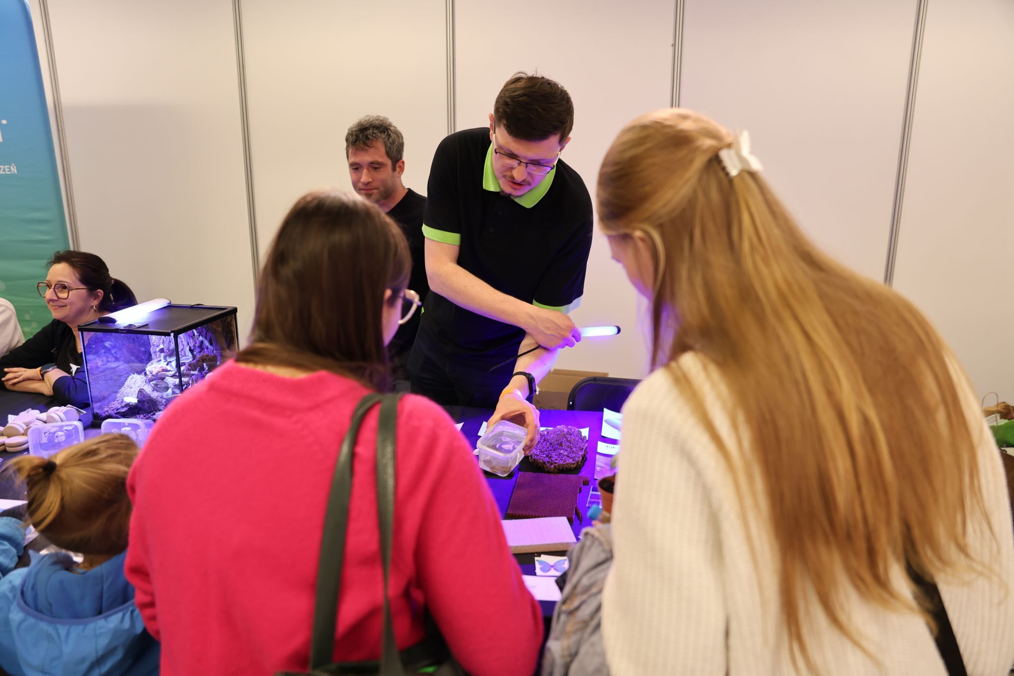 W ramach uczenia o biomimetyce – nauce czerpiącej inspiracje z natury – eksperci z Łukasiewicz – GIT prezentowali, jak skrzydło motyla Morpho didius stało się pierwowzorem dla tkaniny GoreTex. Uczestnicy mogli też zmierzyć kąt zwilżania różnych powierzchni i eksperymentować z wilgotnością materiałów.